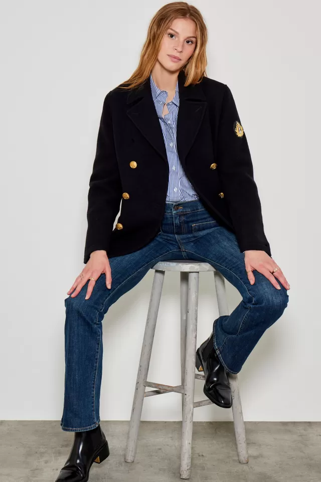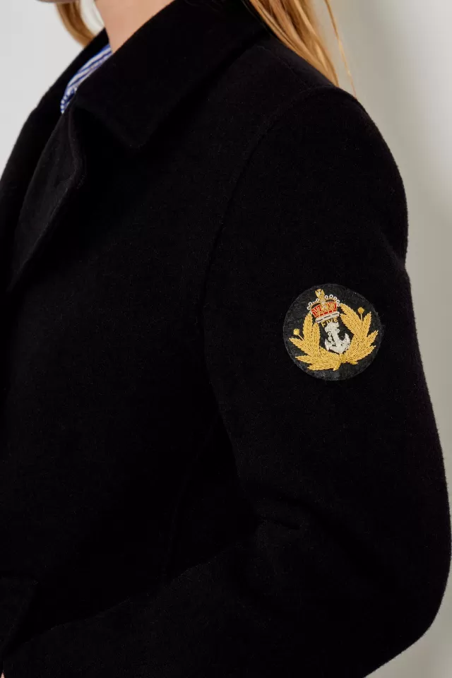 CabanCoupe droiteFermeture à boutonsBadge sur la manche gauche2 poches sur le devantNotre mannequin porte une taille S.