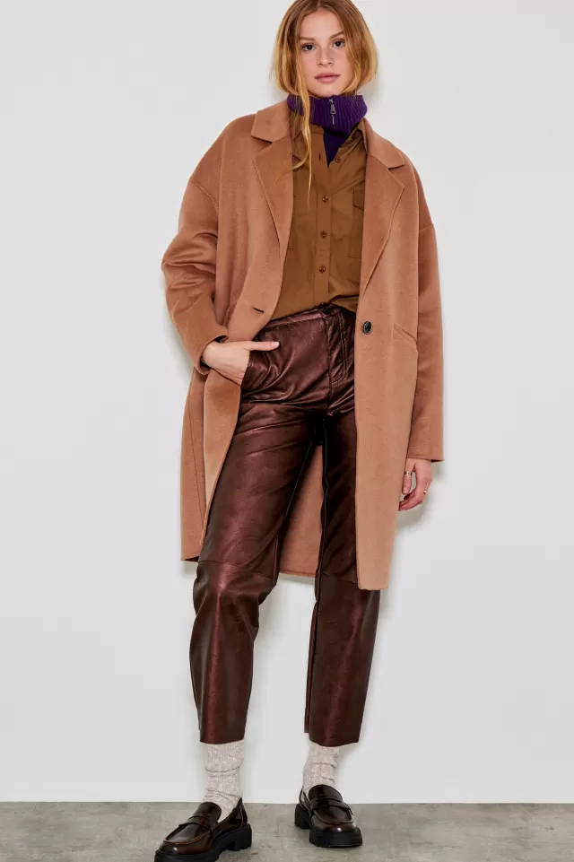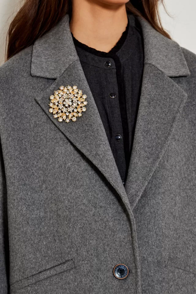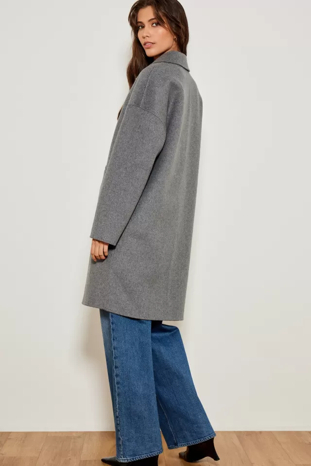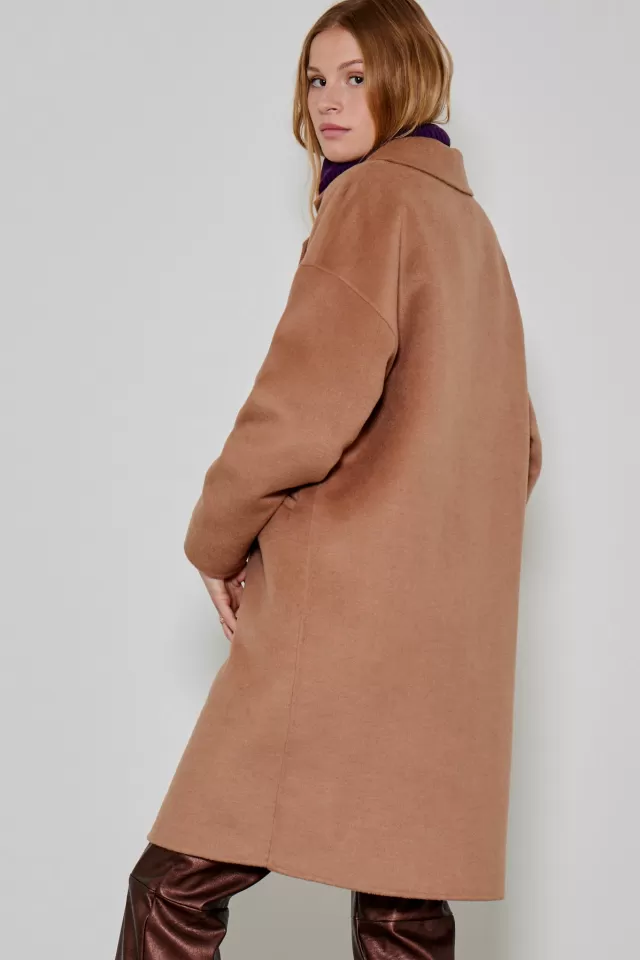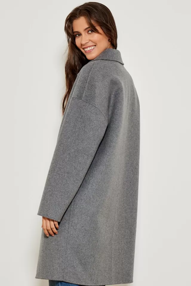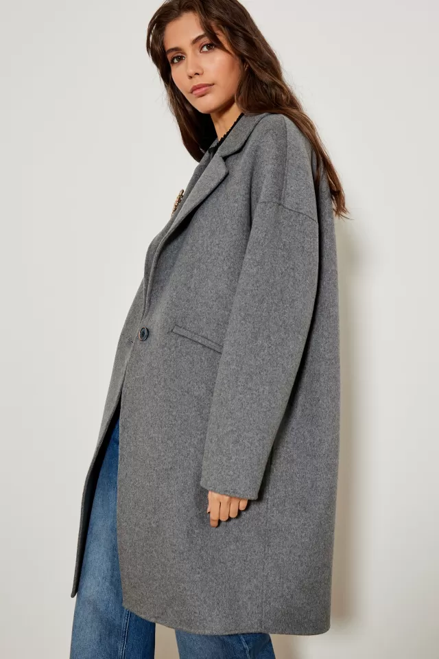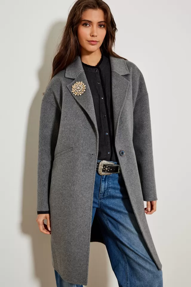 Manteau longCoupe droiteFermeture avec un bouton2 poches sur le devantNotre mannequin porte une taille S.