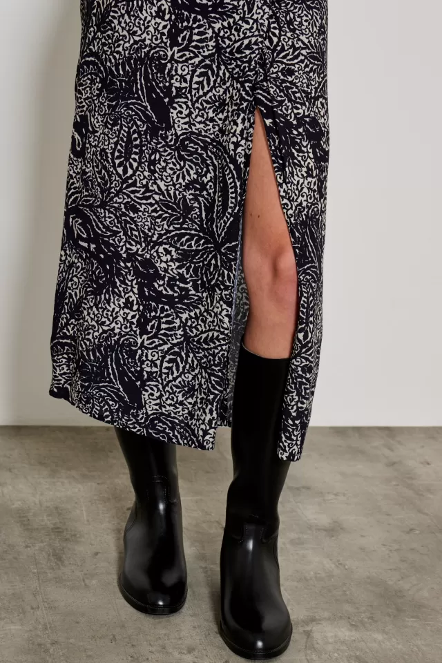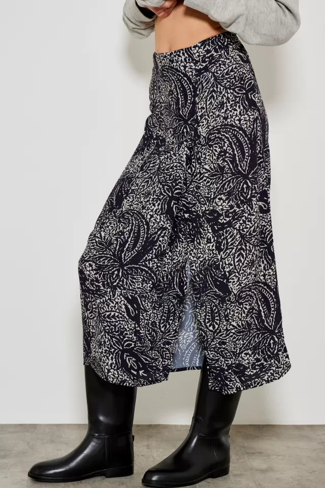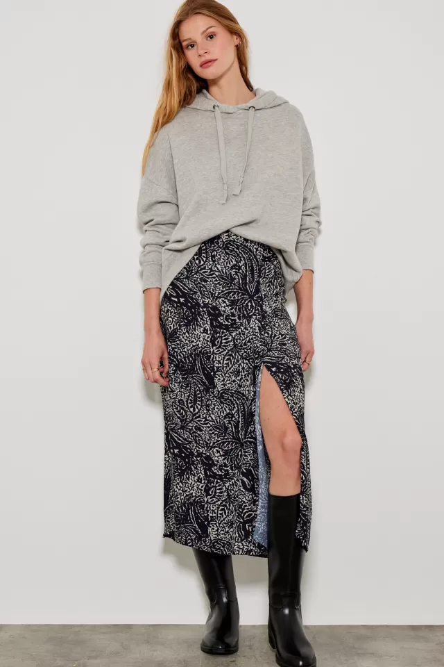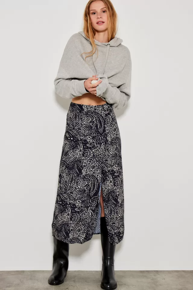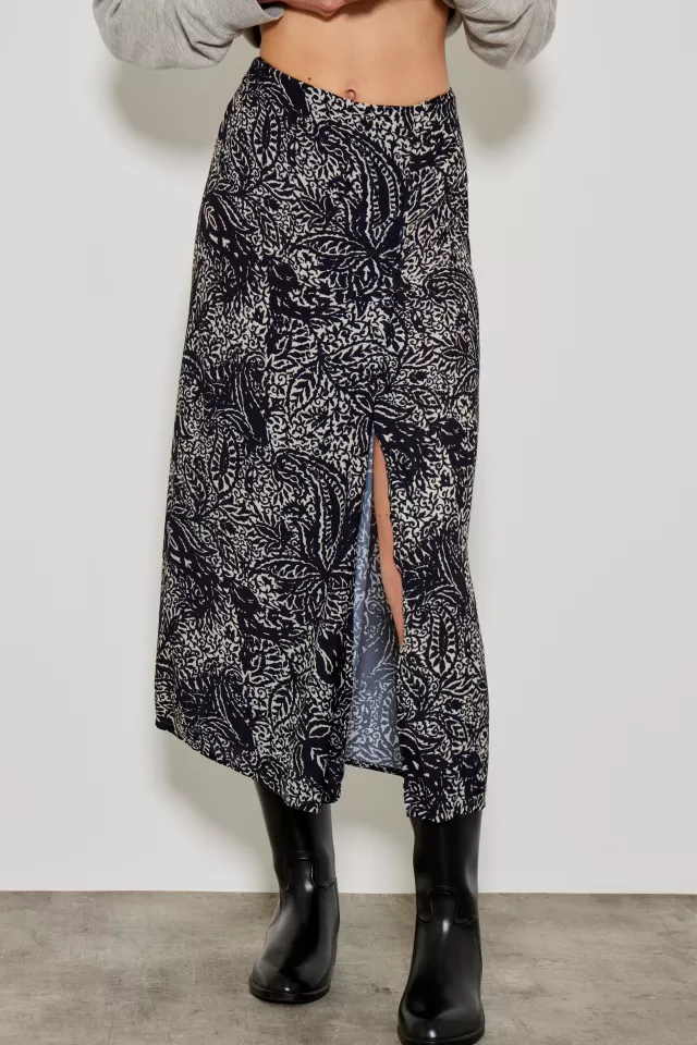 Jupe longue fluideType portefeuilleZip sur le côtéPinces dans le dosHauteur milieu dos : 85cmNotre mannequin porte une…