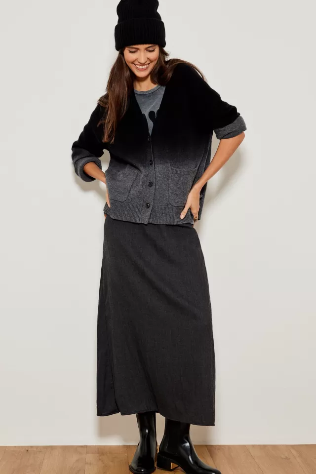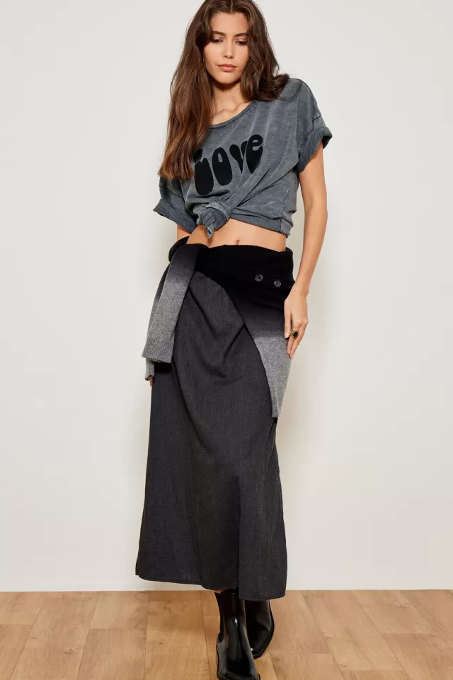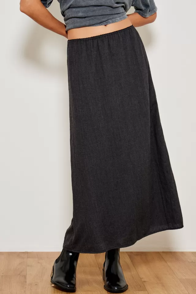 Jupe longue fluideCeinture élastiqueHauteur milieu dos : 88cmNotre mannequin porte une taille S.