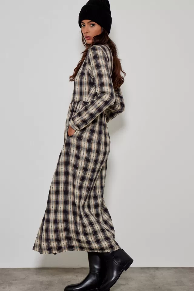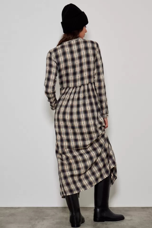 Robe longue ampleCol rondManches longuesPoches sur le côtéHauteur milieu dos : 130cmNotre mannequin porte une taille S…