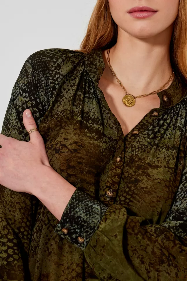 Robe longue ampleCol tunisienEmmanchure raglanManches longuesPoches sur le côtéHauteur milieu dos : 130cmNotre mannequ…