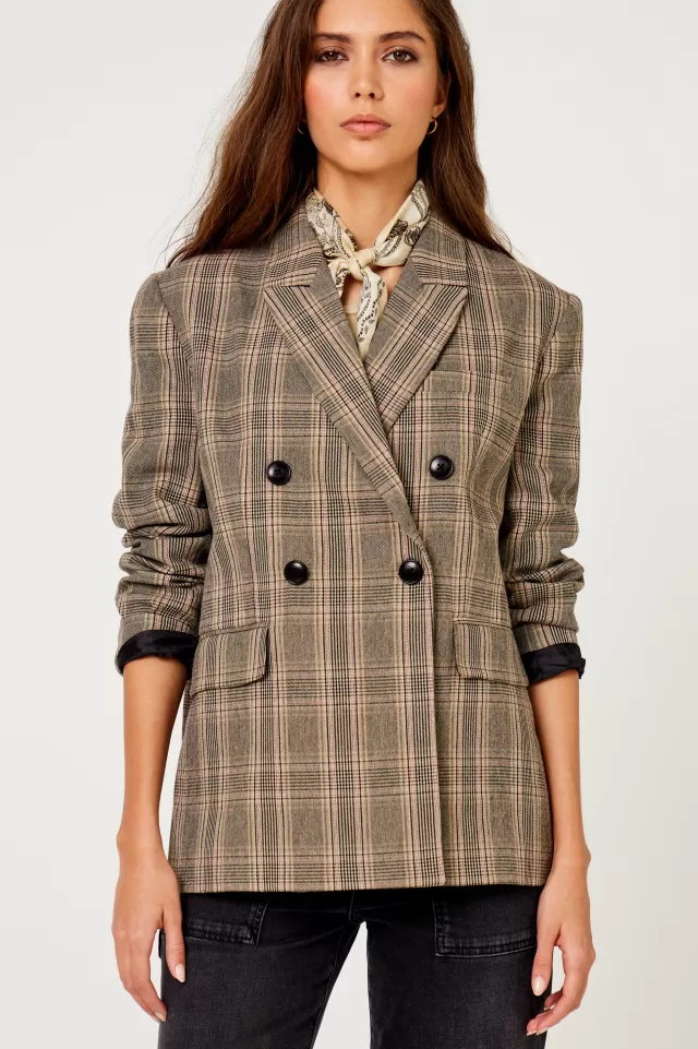 Veste BlazerCol tailleurCoupe droite2 poches sur le devantFermeture à BoutonNotre mannequin porte une taille S.