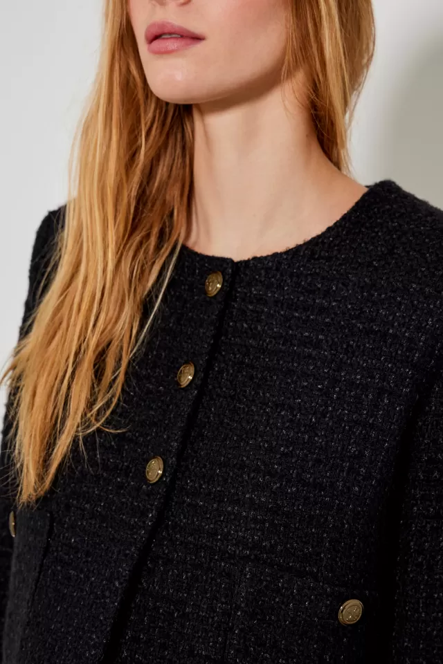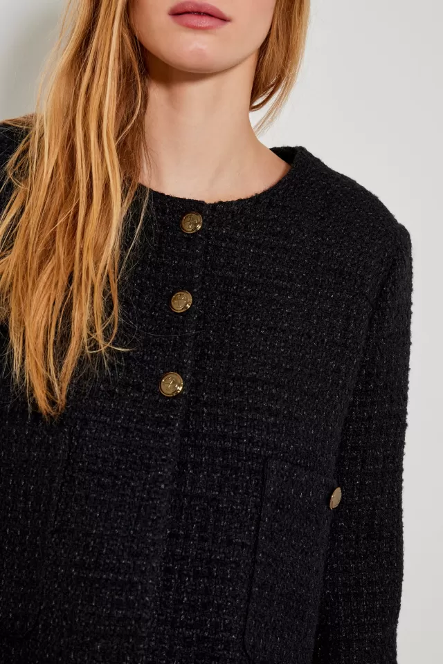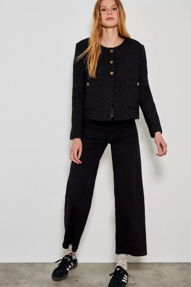 VesteCoupe droiteCol rond2 poches sur le devantFermeture avec Boutons griffés FIVENotre mannequin porte une taille S