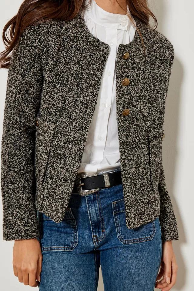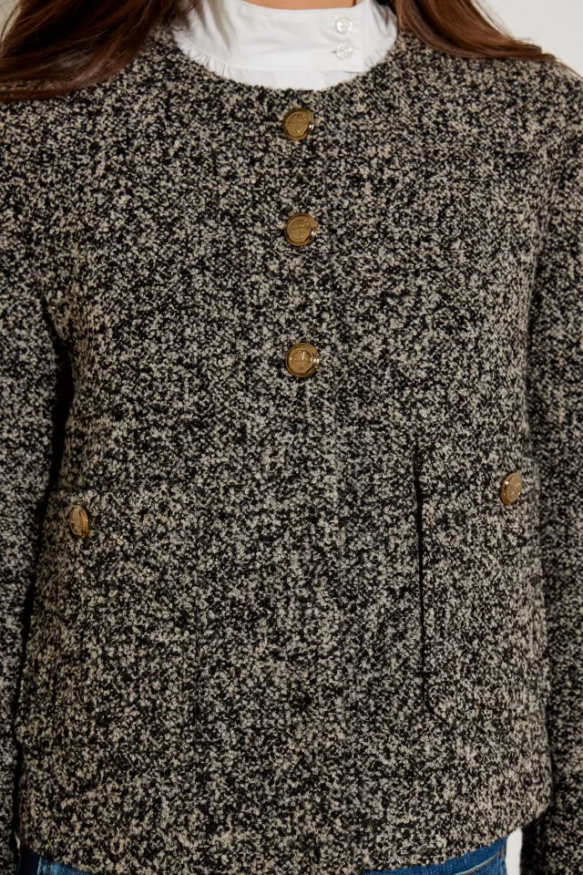VesteCoupe droiteCol rond2 poches sur le devantFermeture avec Boutons griffés FIVENotre mannequin porte une taille S