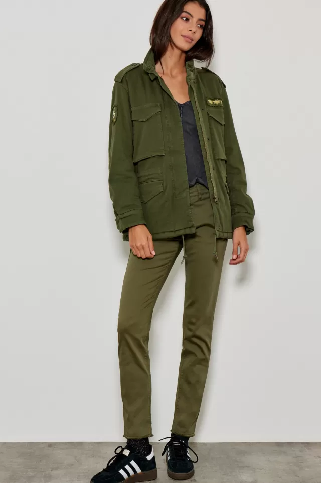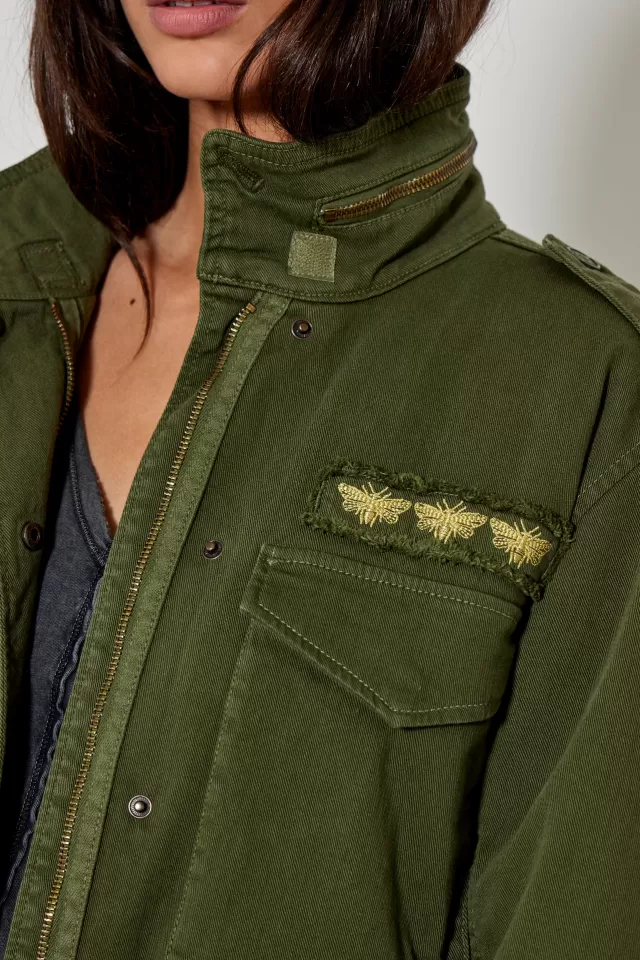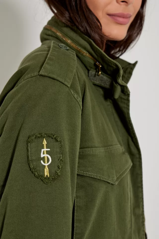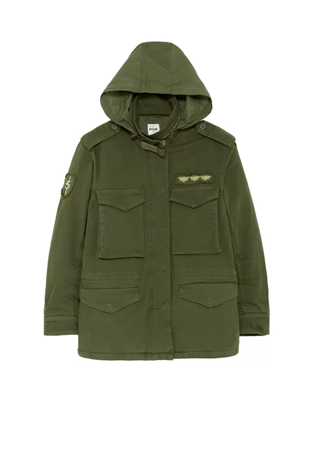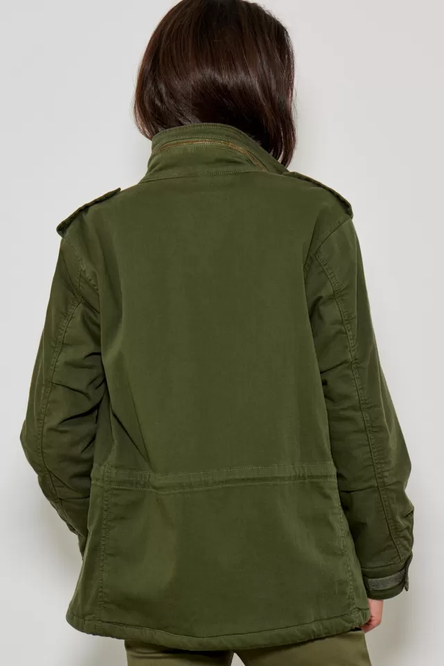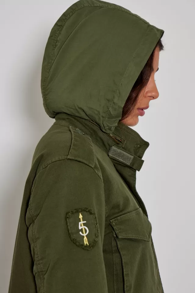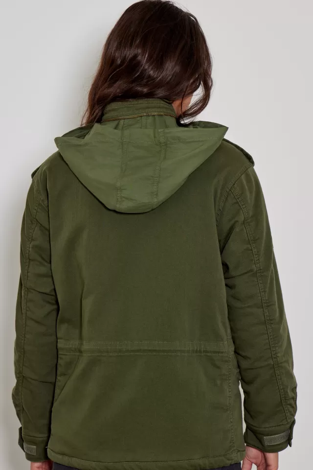 Veste MilitaireCoupe courte et largeFermeture cachée sous rabat4 poches sur le devantCapuche qui se range dans le colD…