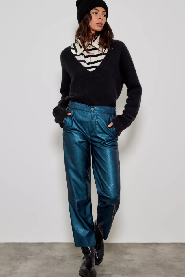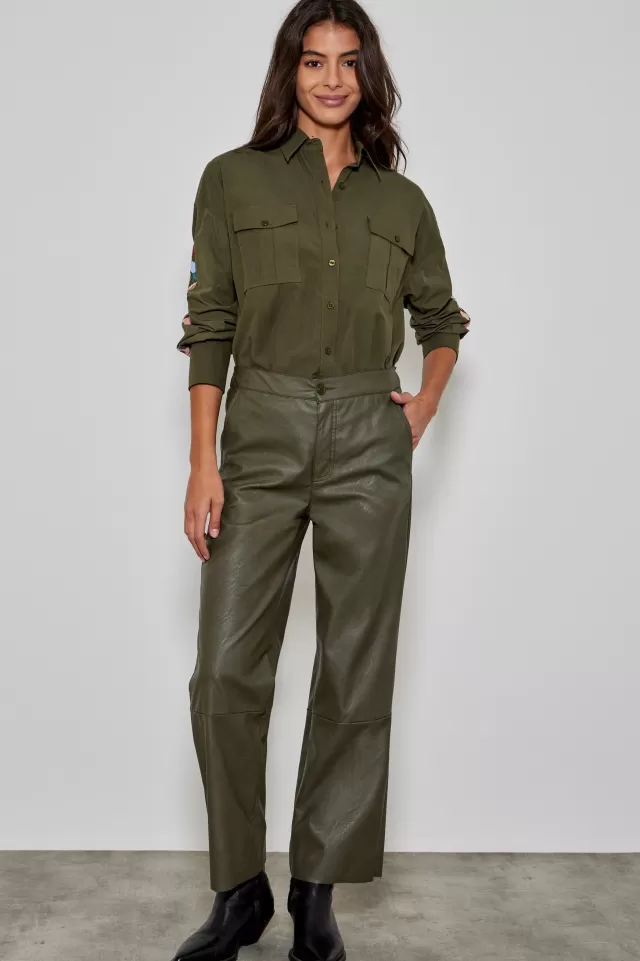 Pantalon droitTaille StandardFermeture avec un bouton de marque FIVE et un zip caché sous le rabatCeinture avec un éla…