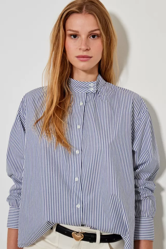 Chemise en popelineCoupe droiteCol montantManches longuesFinition arrondie sur le fondNotre mannequin porte une taille S…