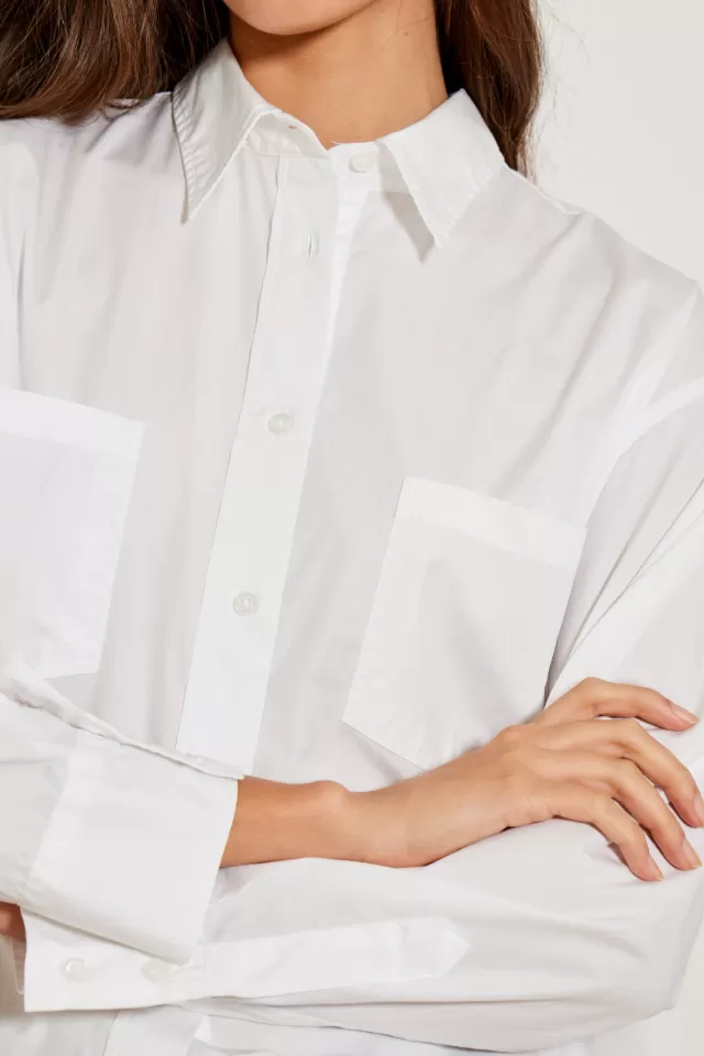 Chemise en popelineCoupe droiteSe ferme par une patte de boutonnage sur le devant avec des boutonsCol libreManches longu…