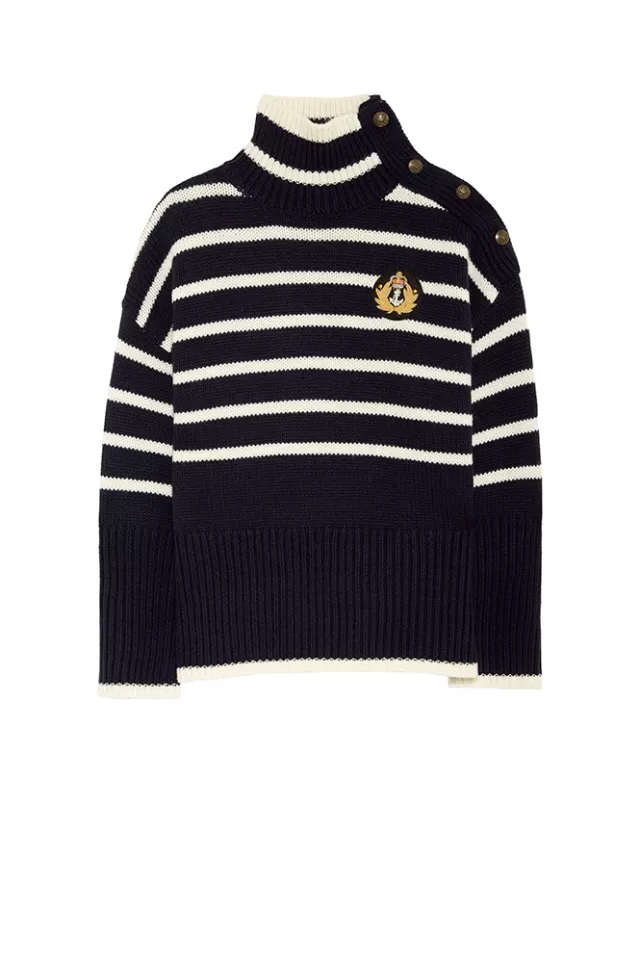 MarinièreCol montantEmmanchure droiteManche longueÉcusson brodé sur le devantNotre mannequin porte une taille S