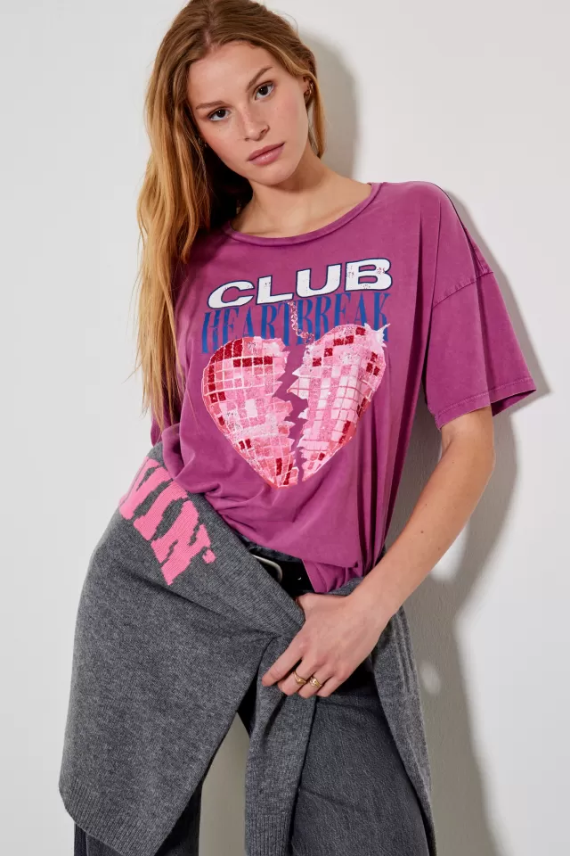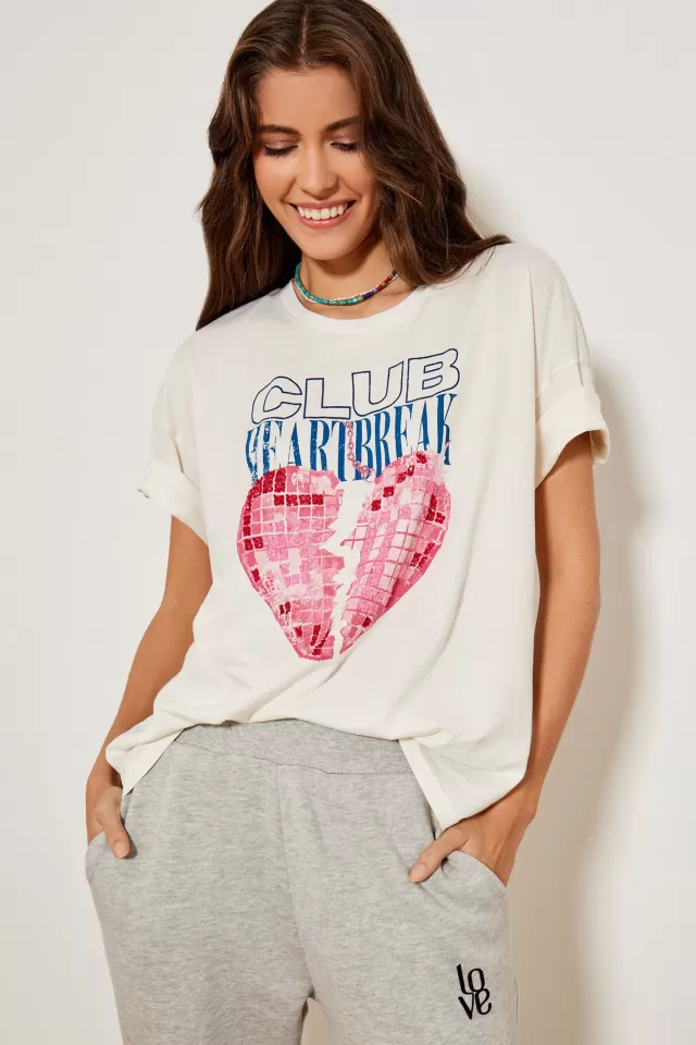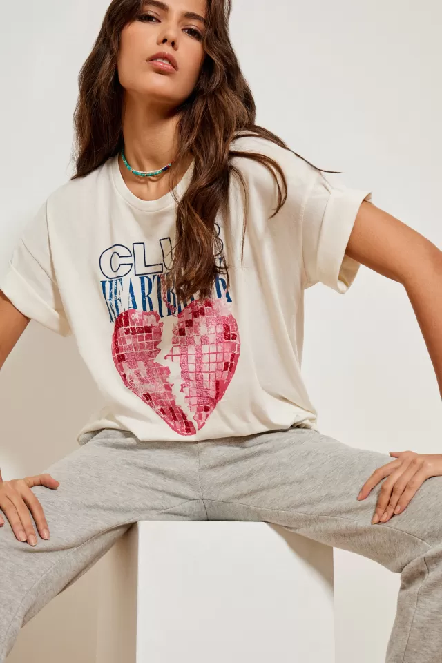 Tee-shirt ampleCol rondManches courtesImpriméNotre mannequin porte une taille S.