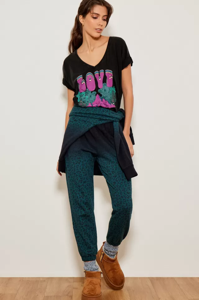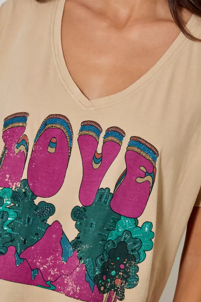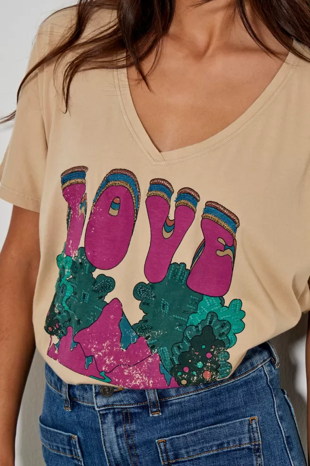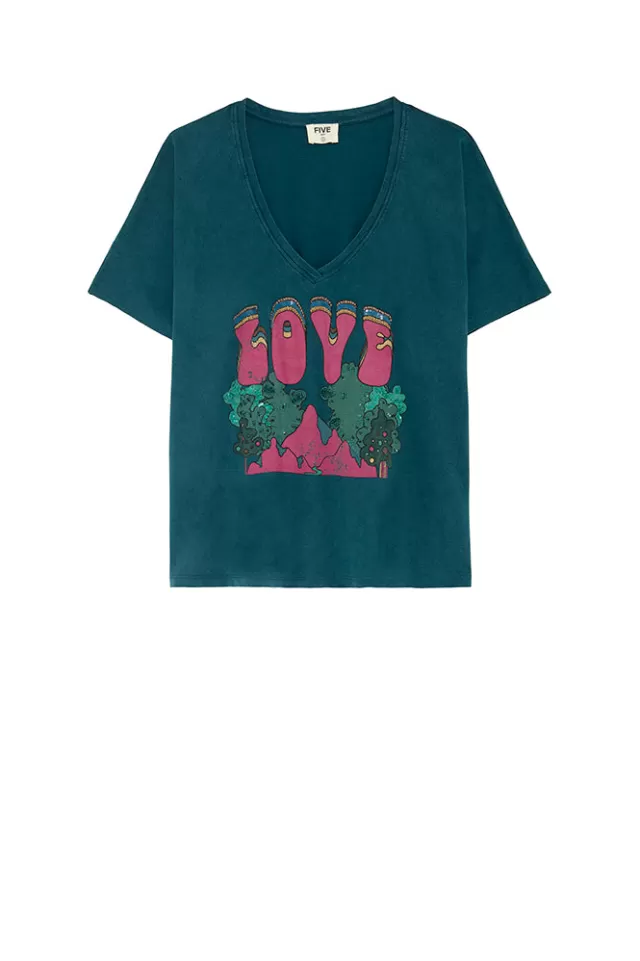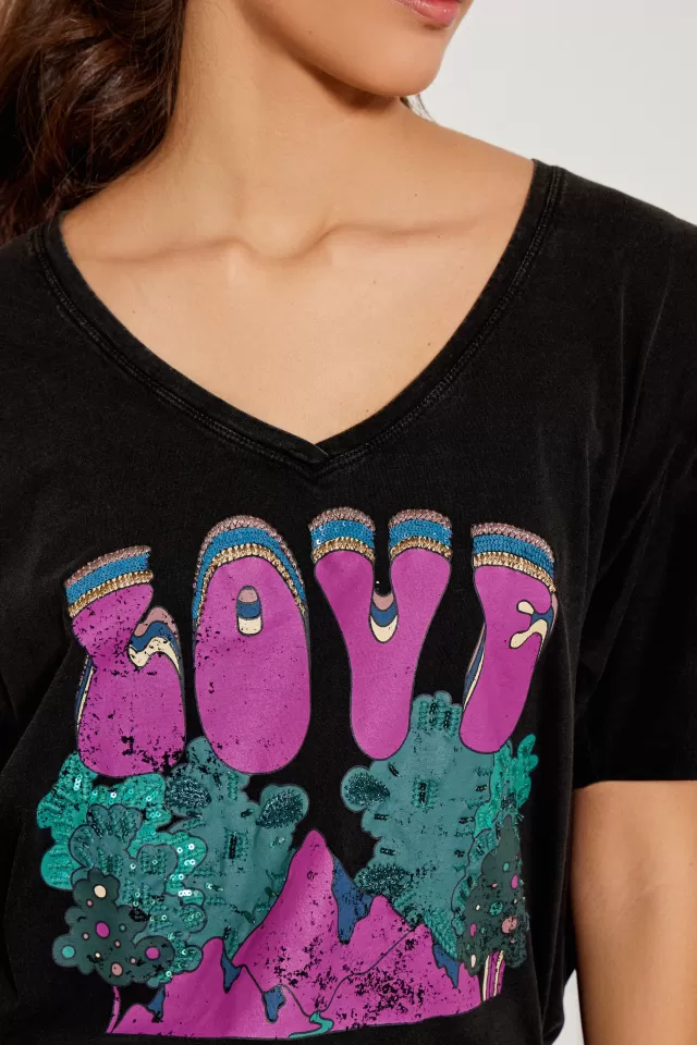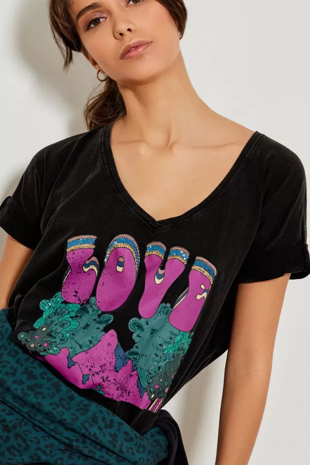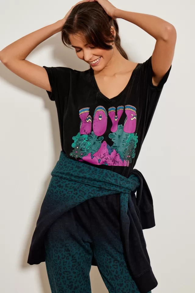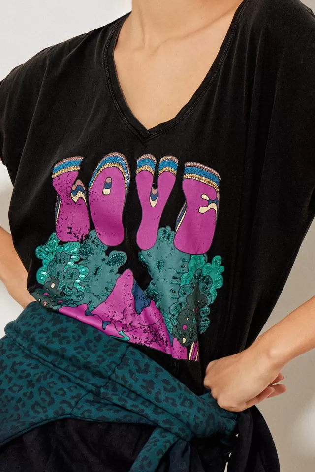 Tee-shirt ampleCol VManches courtesImpriméNotre mannequin porte une taille S.