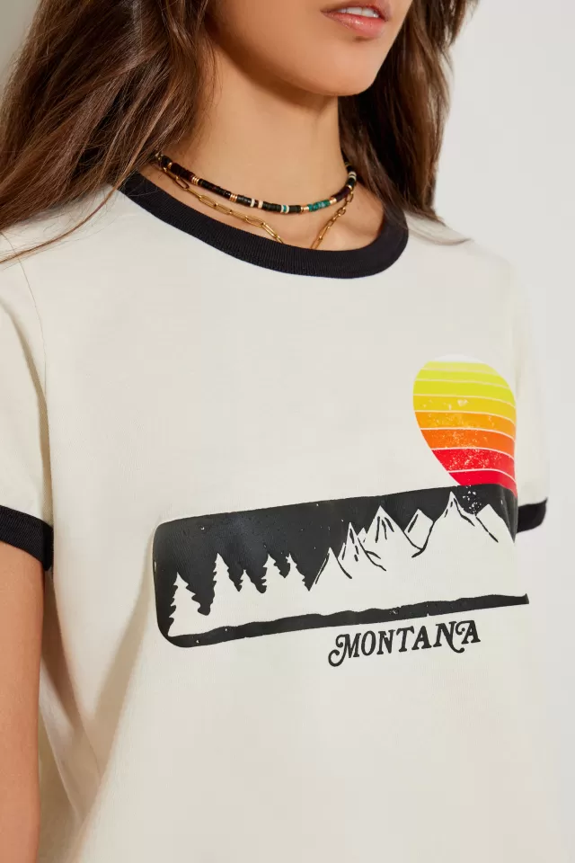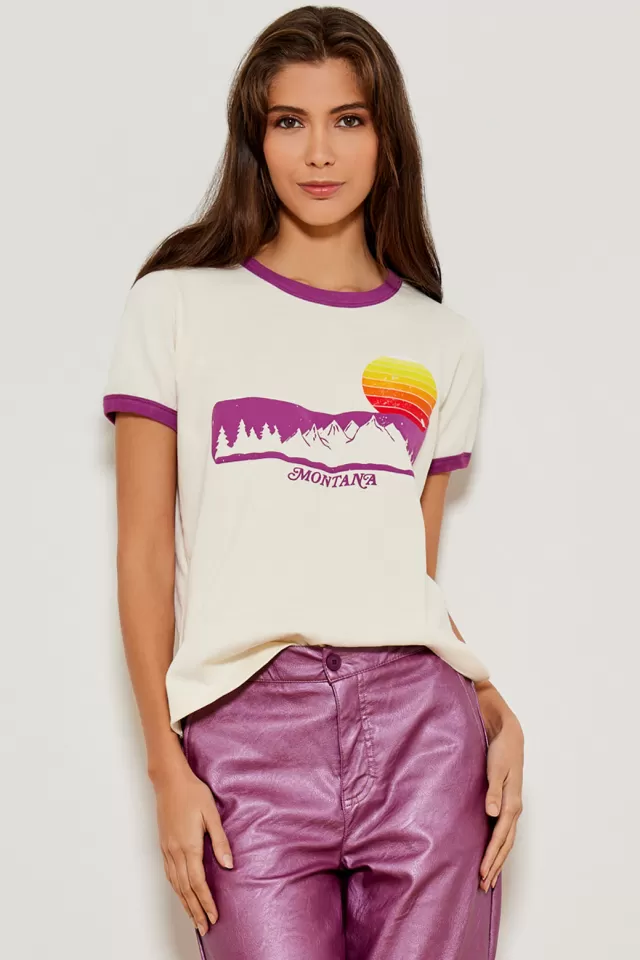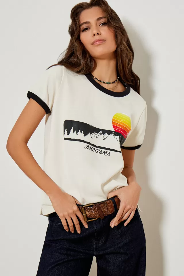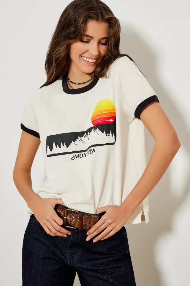 Tee-shirt ampleCol rondManches courtesImpriméNotre mannequin porte une taille S.