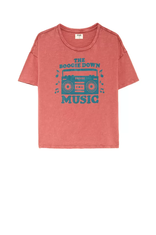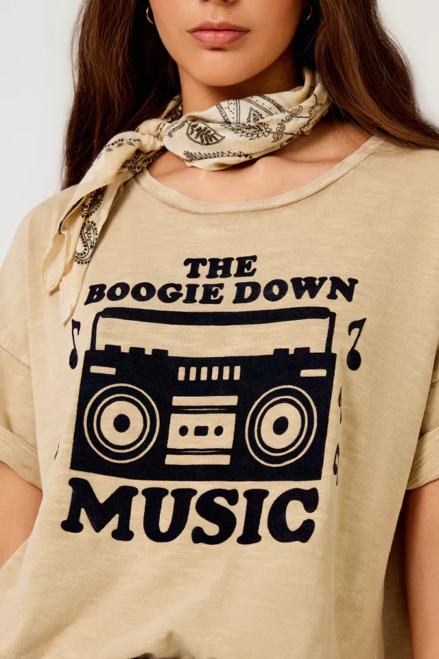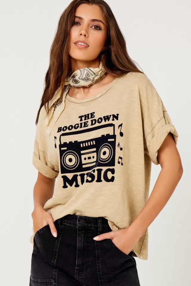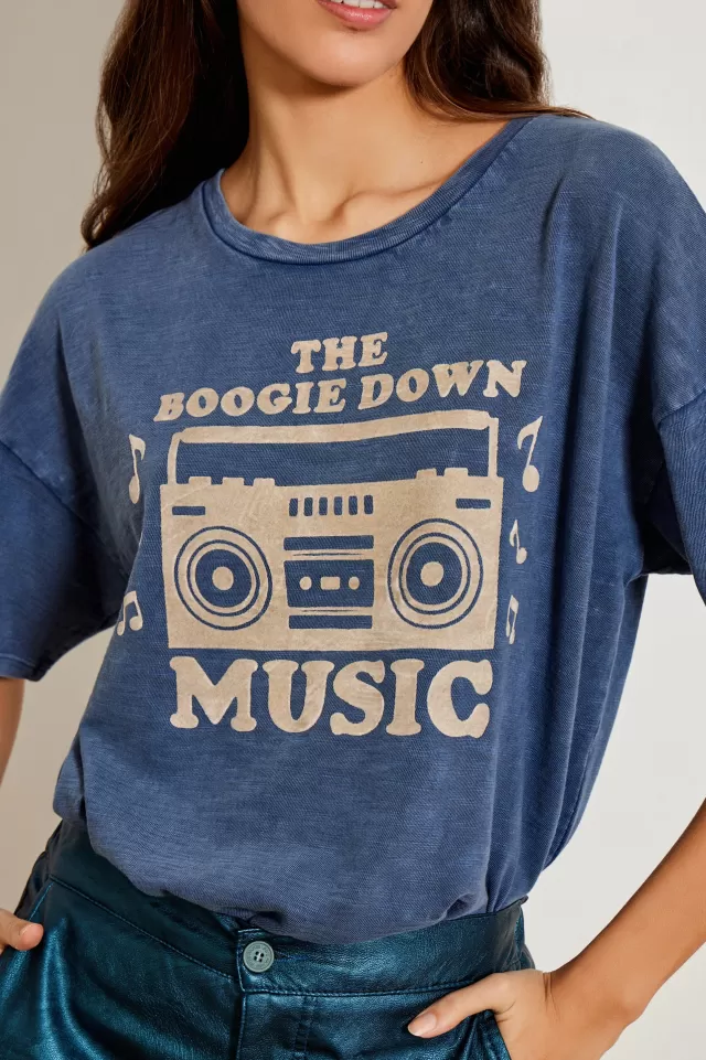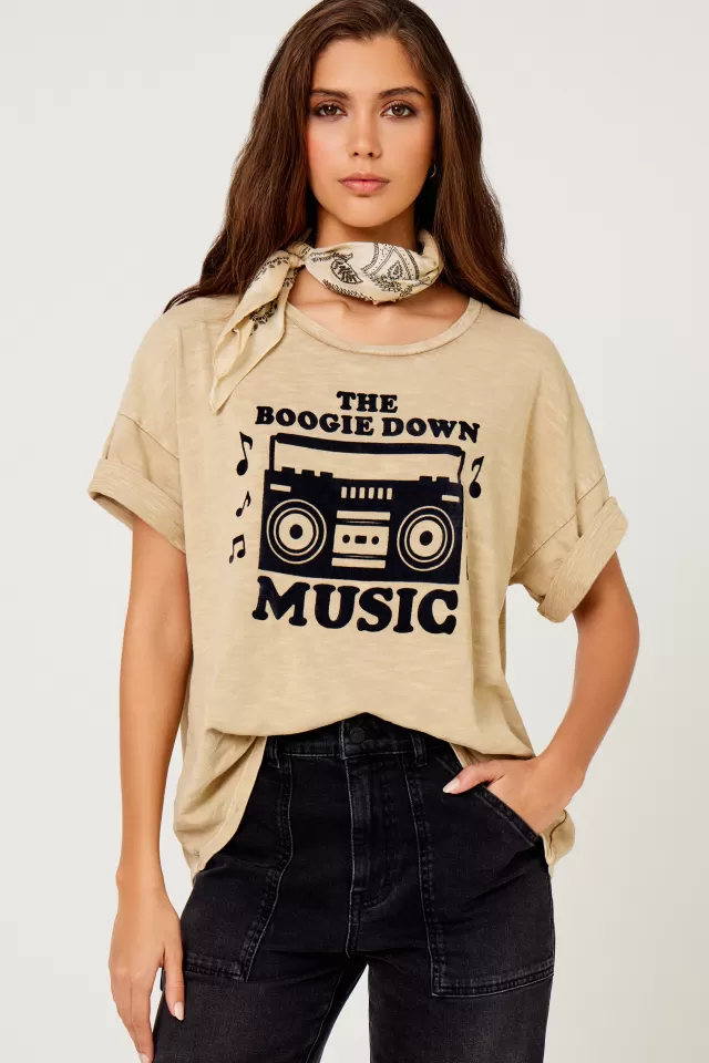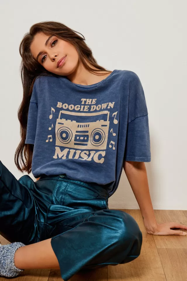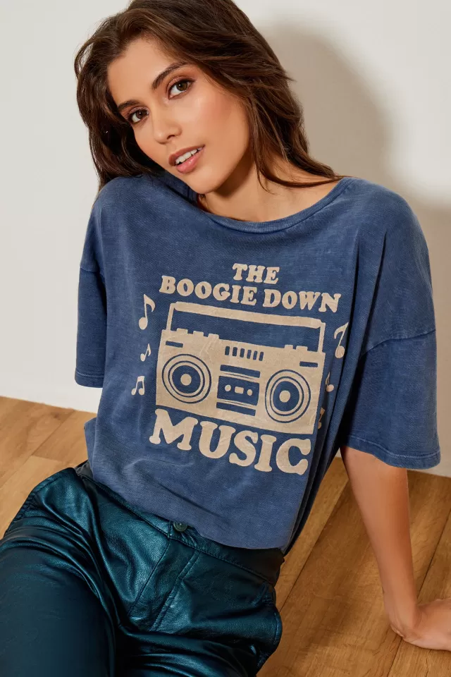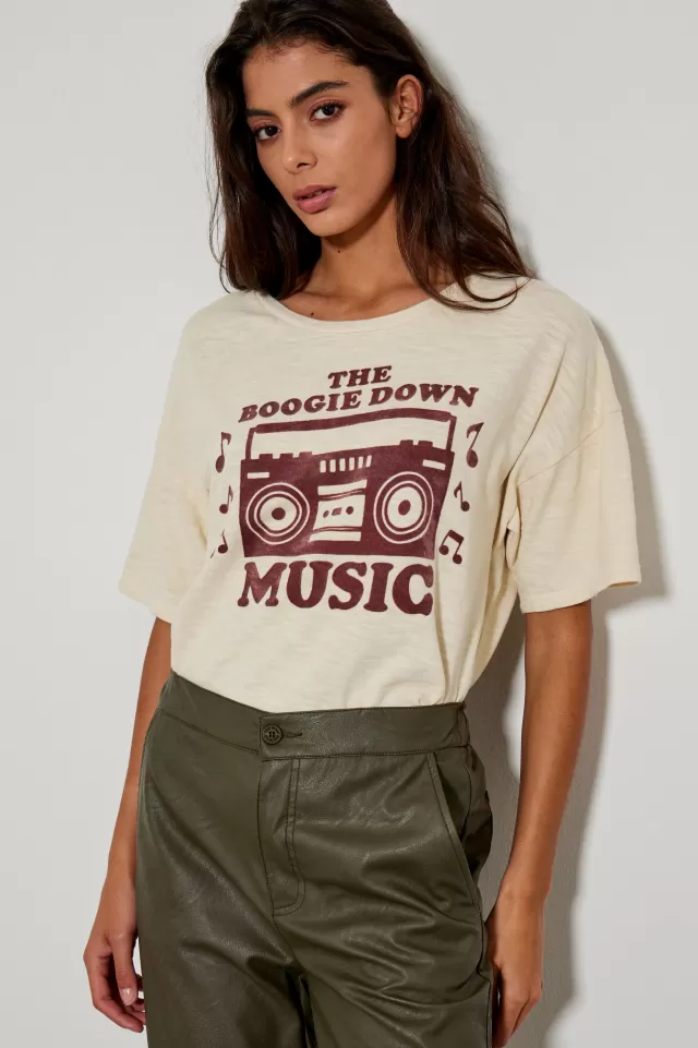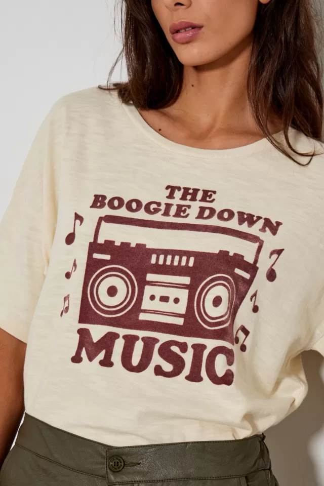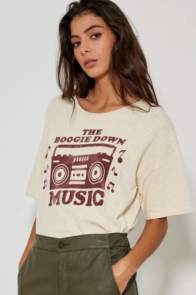 Tee-shirt ampleCol rondManches courtesImpriméNotre mannequin porte une taille S.